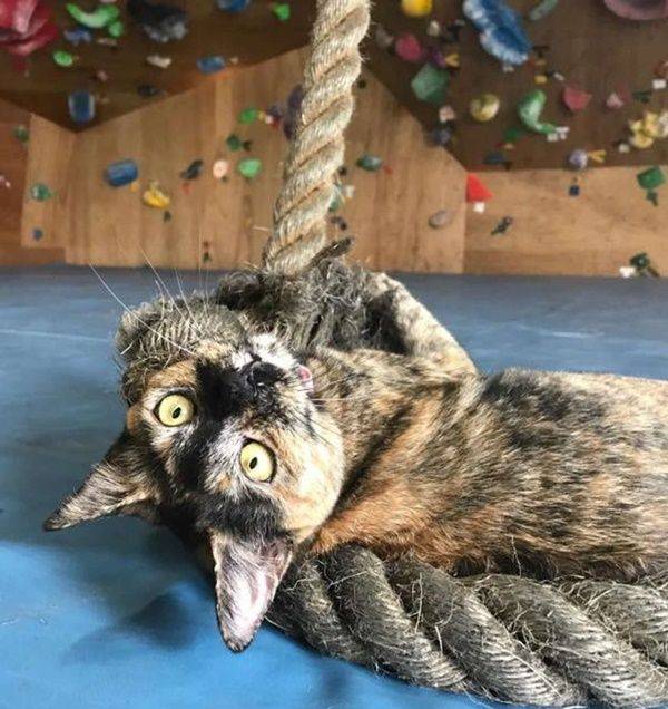 처음에 고안 씨는 라라가 선반 위나 천장에 매달린 줄을 타고 오르는 것을 보면서도 평범한 고양이들의 행동이라 생각하고 가볍게 넘겼습니다. 하지만 몇 달 뒤 라라는 사람들이 암벽 타는 모습을 유심히 지켜보는 것에서 나아가, 직접 암벽을 타며 실력을 발휘하기 시작했습니다. 한번 자신감이 붙은 라라가 벽 꼭대기까지 올라가는 건 시간문제였습니다.