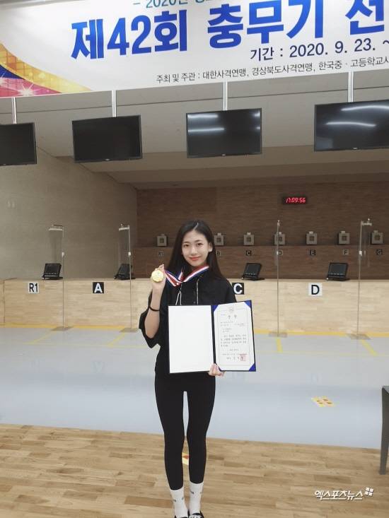 소셜미디어에는 "여러분~저 1등했어요. 어제 열린 충무기 전국 중고등학생 사격대회에서 언니오빠들을 이기고 대회신기록으로 금메달 땄어요~정신집중을 위해 취미로 시작한 사격이 이런 기쁨을 안겨주다니"라고 적었다.