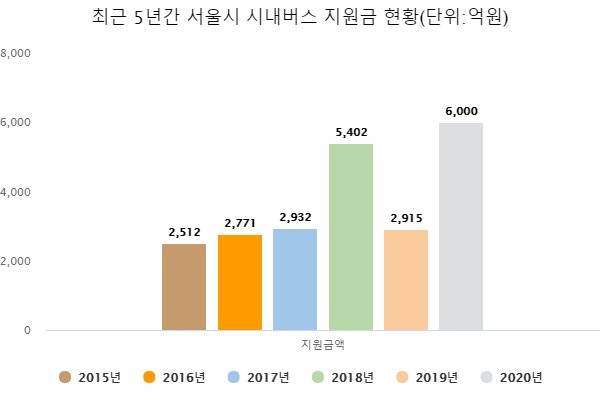 버스 준공영제를 시행 중인 서울시가 올해 시내버스 업계에 줘야 할 지원금이 6000억원을 넘을 것으로 나타났다. 지난 2004년 버스 준공영제 시행 이후 최대 규모다. 신종코로나바이러스 감염증(코로나 19) 여파로 버스 승객이 급감했기 때문이다.
