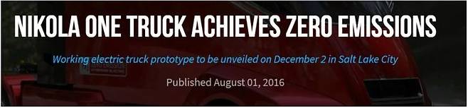 니콜라는 수소전기차 개발 발표 3개월 전인 5월 9일에도 CNG 트럭 주문을 받는다고 발표했고, 수소 전기차 발표 2주 전까지만 해도 수소가 아닌 CNG 트럭에 역량을 집중하고 있다고 밝혔었다.