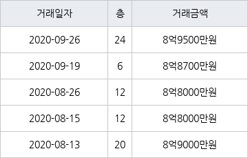 지난 2020년 9월 26일 같은 면적형인 24층 물건이 8억9500만원에 실거래된 것과 비교해 같은 가격이다.