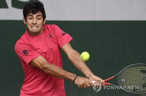 epa08711785 Cristian Garin of Chile in action against Marc Polmans of Australia during their men?s second round match during the French Open tennis tournament at Roland ?Garros in Paris, France, 01 October 2020. EPA/JULIEN DE ROSA