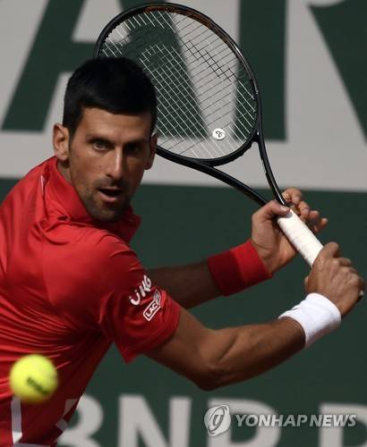 epa08712111 Novak Djokovic of Serbia in action against Ricardas Berankis of Lithuania during their men?s second round match during the French Open tennis tournament at Roland ?Garros in Paris, France, 01 October 2020. EPA/JULIEN DE ROSA