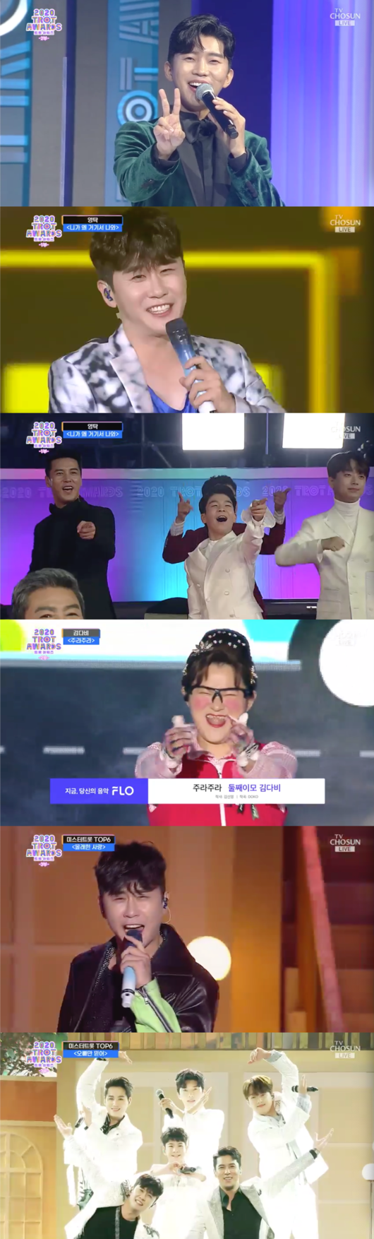 특히 ‘미스터트롯’ 톱6인 임영웅, 영탁, 이찬원, 장민호, 정동원, 김희재는 시상식 자체를 즐겼다. 무대마다 일어나서 춤추며 환호했고 3부 오프닝은 트로트를 한편의 뮤지컬로 엮어 시청자들의 눈과 귀를 사로잡았다.