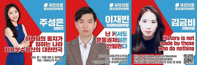 국민의힘 청년위는 지난달 29일 SNS(사회관계망서비스)에 청년위원들의 자기소개를 카드뉴스 형식으로 올렸다.