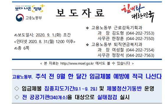 "추석 연휴에도...체불임금에 우는 근로자들" "고용노동부, 추석 대비 임금체불 방지대책 추진"