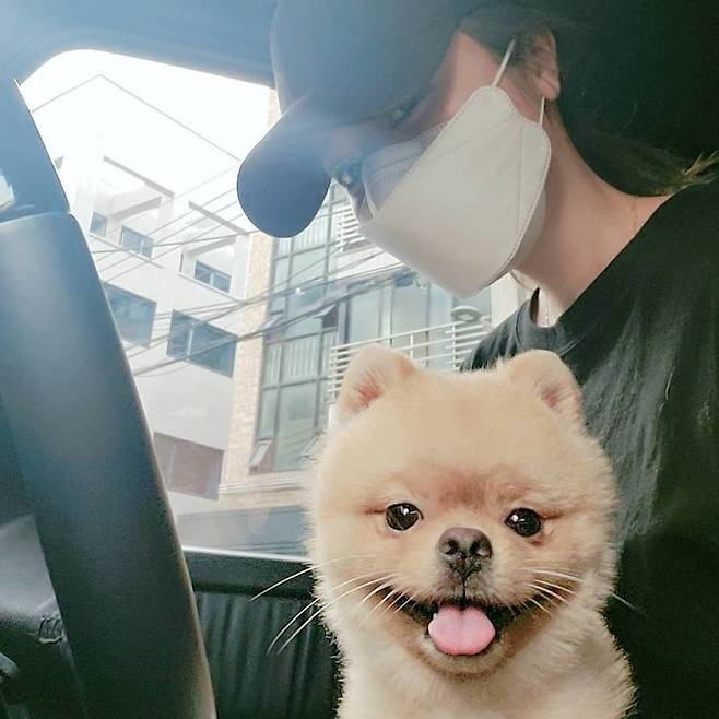 홍진영, 애완견과 함께 하는 평화로운 주말 "잠시 마실" [SNS★컷]