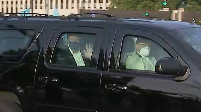하루 전에는 병원 주변 지지자들을 만나기 위해 차를 타고 '깜짝 외출'을 하기도 했습니다. 그 차에는 '확진자'인 대통령을 위해 마스크 한 장에 의지한 경호원 2명이 동승했습니다.