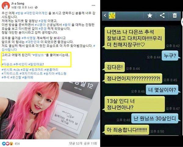방송 이후 송지아에게 대중의 관심이 이어지며 뜻밖의 과거가 밝혀졌는데요, 바로 온라인상에서 '유머 짤방'으로 화제를 모았던 '원남쓰'의 주인공이 송지아였습니다. 해당 짤방은 송지아를 자신의 친구로 착각한 한 초등학생이 "나연쓰 추석 잘 보내고 다치지 마"라는 메시지를 보내자, 송지아가 "난 원남쓰, 30살인디"라며 재치 있게 답해 누리꾼들에게 웃음을 안긴 내용입니다.