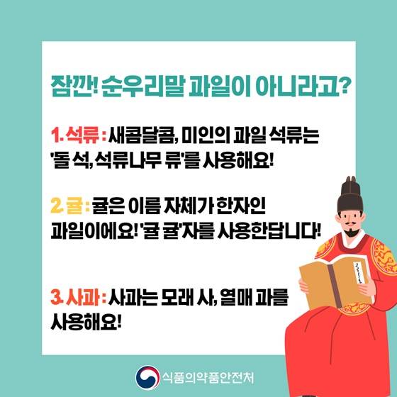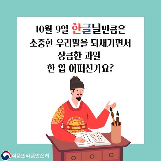 한글날을 맞아 순우리말 과일을 식약처에서 소개해드리겠습니다! 지금부터 살펴볼까요?