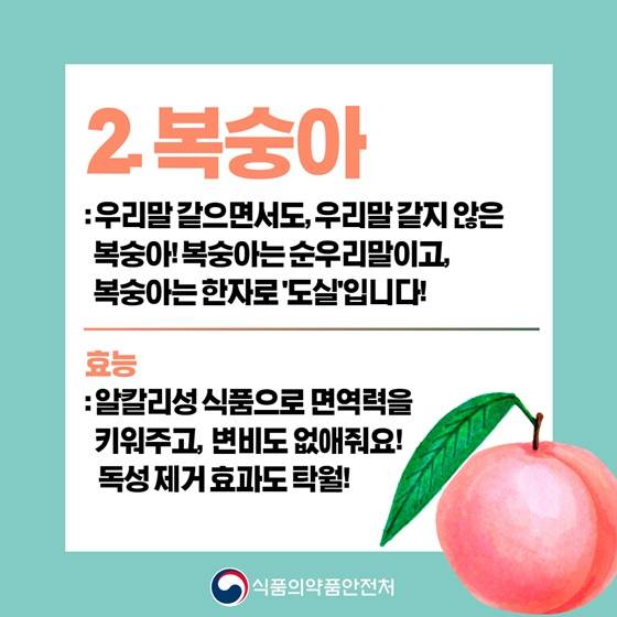 우리말 같으면서도, 우리말 같지 않은 복숭아! 복숭아는 순우리말이고, 복숭아는 한자로 ‘도실’입니다!