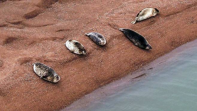 오늘(6일) 서산시에 따르면 최근 가로림만 모래톱에서 쉬고 있는 점박이물범 5마리를 드론으로 촬영하는 데 성공했습니다.