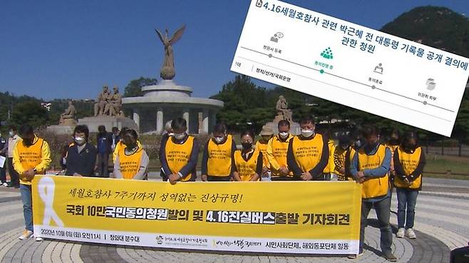 세월호 유족들과 시민사회단체들이 세월호 참사 7주기 전 성역 없는 진상 규명을 위해 10만 국민동의청원에 동참해줄 것을 호소했습니다.