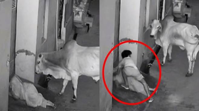 지난달 28일, 여느 때처럼 집 주변 골목길을 걷던 한 여성은 길가에 서 있는 소를 발견했습니다. 인도에서는 거리를 자유롭게 활보하는 소들을 흔하게 볼 수 있는 데다가 이날 마주친 소가 특별한 움직임을 보이지 않은 터라, 여성은 아무런 경계 없이 가던 길을 재촉했습니다.