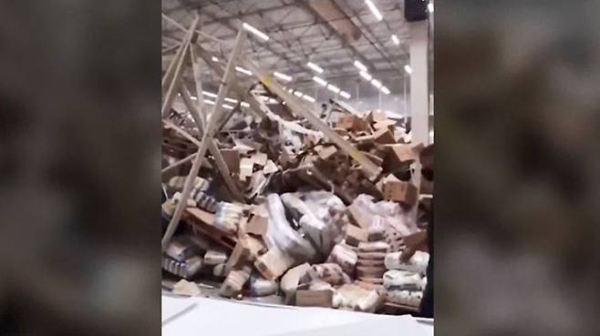 손님들과 직원들은 비명을 지르면서 황급하게 대피하는데요, 진열대가 무너지면서 떨어진 물건들은 바닥에 나뒹굴었고 곳곳에서는 사람들의 울음소리가 터져 나왔습니다.