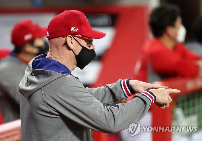 (광주=연합뉴스) 조남수 기자 = 6일 광주-기아챔피언스필드에서 열린 2020 KBO리그 한화 이글스와 KIA 타이거즈의 경기에서 KIA 윌리엄스 감독이 1회 말에 비디오판독을 요청하고 있다. 2020.10.6