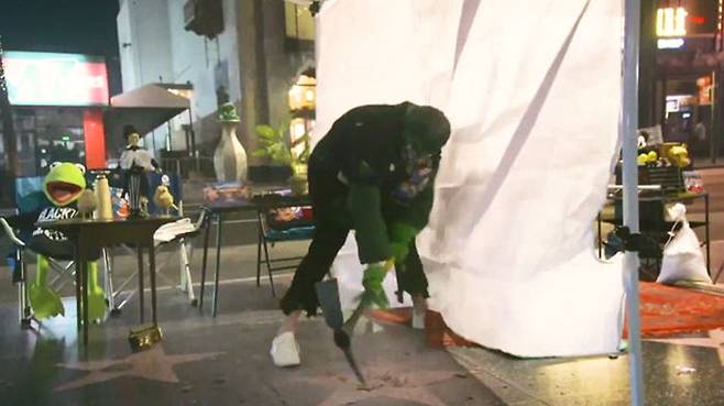 헐크가 곡괭이로 냅다 '쾅'..'트럼프 별' 수난 시대