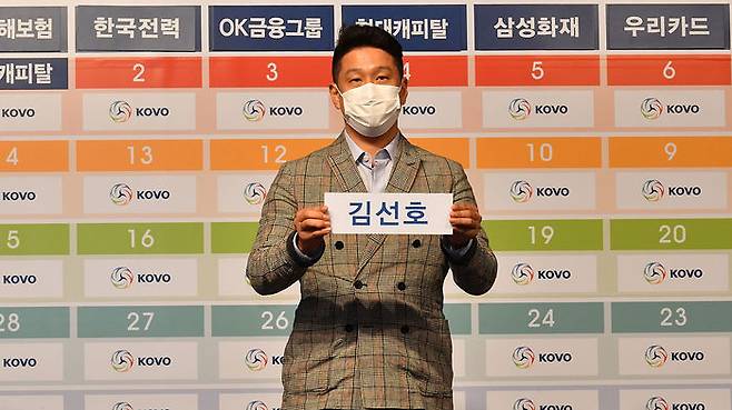 현대캐피탈은 KB손해보험의 1라운드 지명권을 양도받아 전체 1순위 선택권을 쥐게 됐습니다. 현대캐피탈의 선택에 관심이 쏠린 가운데 최태웅 감독은 이례적으로 타임을 외쳤습니다. 그리고 고심 끝에 한양대 레프트 김선호를 지명했습니다.