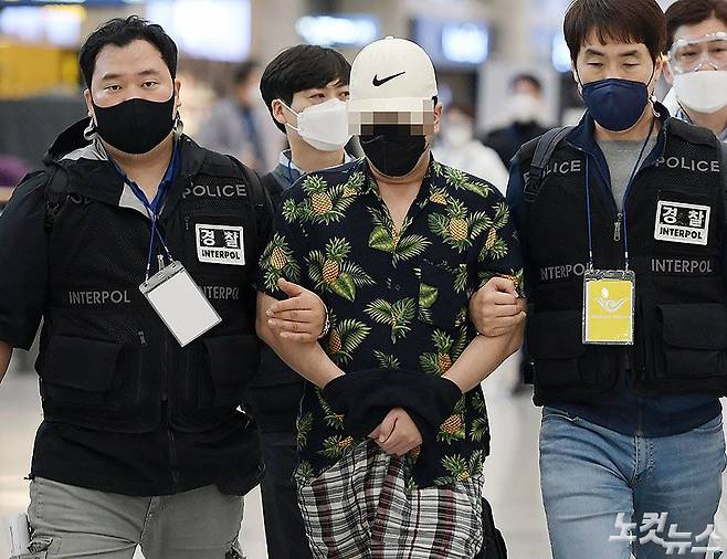 성범죄자로 지목된 사람의 신상정보를 무단 공개해 논란을 빚은 웹사이트 '디지털 교도소' 운영자 A씨가 6일 오전 인천국제공항을 통해 베트남에서 강제송환되고 있다. (인천공항=이한형 기자)