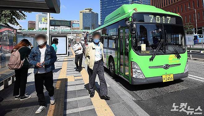 다음달 13일부터 코로나19 방역을 위한 '마스크 착용 의무화 행정명령'을 위반하면 최고 10만원의 과태료를 내야 한다. 구체적으로 불특정 다수가 이용해 감염 확산 우려가 큰 대중교통, 집회·시위 장소는 사회적 거리두기 단계와 관계 없이 마스크 착용 의무화 대상이다. 입과 코를 완전히 가리지 않은 이른바 ‘턱스크’도 과태료 부과 대상이다. 사진은 5일 오후 서울역 환승센터 모습. (황진환 기자)