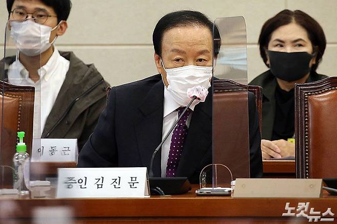 독감 백신 상온 노출로 물의를 빚은 신성약품 김진문 대표가 8일 국회 보건복지위원회 복지부, 질병관리청에 대한 국정감사에 출석해 발언하고 있다. (윤창원 기자)