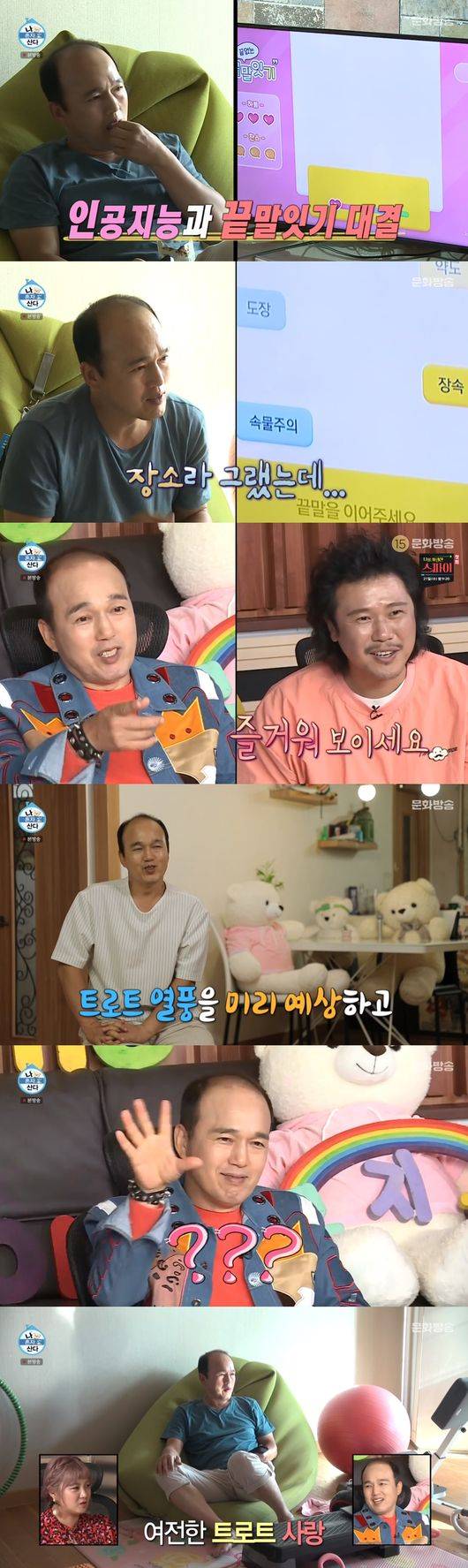 한편, 김광규는 TV와 끝말잇기를 시작했다. 김광규는 "소파에 등받이 앉았는데 리모컨을 잘 못 눌렀다. 근데 끝말잇기 게임이 있더라"라며 TV와 끝말잇기 게임을 해 웃음을 자아냈다. 김광규는 진지하면서 재밌게 끝말잇기를 즐겨 폭소케 했다.