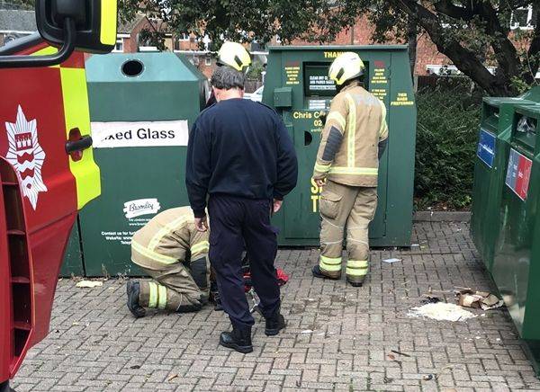누군가가 헌 옷 수거함에 고양이를 버리고 갔다고 판단한 맥엘리곳 씨는 급히 경찰서에 전화를 걸었습니다. 현장에 도착한 세 명의 경찰관들도 수거함 속 소리를 들어보고는 "고양이가 맞다. 게다가 두 마리인 것 같다"며 확신했고, 소방대에도 협조를 요청했습니다.