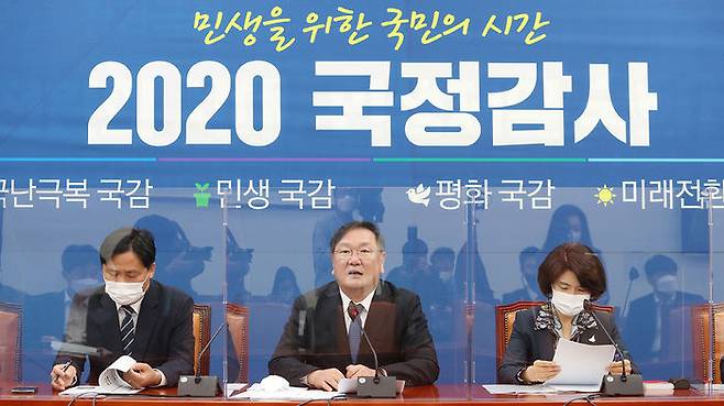 더불어민주당 김태년 원내대표는 야당이 여권의 비호 의혹을 제기하고 있는 라임·옵티머스자산운용 사건과 관련해 "범죄자의 금융사기 사건"이라고 규정했습니다.