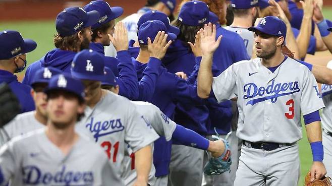 미국프로야구의 '스타 군단' LA 다저스가 메이저리그 내셔널리그 챔피언십시리즈 애틀랜타 브레이브스와 3차전에서 1회에만 11점을 뽑는 무시무시한 화력을 앞세워 15대 3으로 완승했습니다.