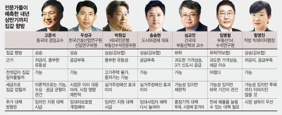 홍남기 경제부총리 등 정부 측은 감정원 통계를 근거로 집값이 안정화되고 있다고 진단했지만 다수의 전문가들은 내년 상반기까지 집값이 상승할 것이라고 예측했다.