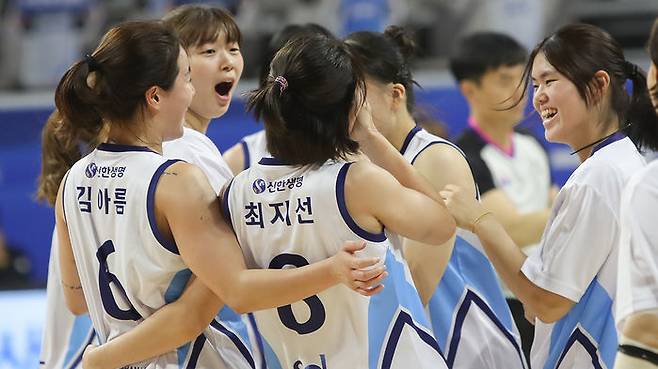 김아름이 공수에서 맹활약하며 12득점에 10리바운드로 '더블 더블'을 작성했고, '주포' 김단비는 3점 4개를 포함해 19득점에 8리바운드 4어시스트를 곁들여 승리를 이끌었습니다.