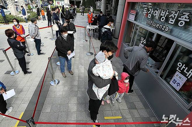 유통과정에서 문제가 발생해 잠정중단했던 독감백신 무료예방접종이 재개된 13일 서울 동대문구 시립동부병원에서 시민들이 독감 예방접종을 위해 줄을 서고 있다. 이날부터 만 13~18살 이하 청소년에 대한 독감 무료예방접종 사업이 재개됐다. 19일부터는 만 70살 이상, 26일부터는 만 62~69살 성인이 접종 대상이 된다. (박종민 기자)