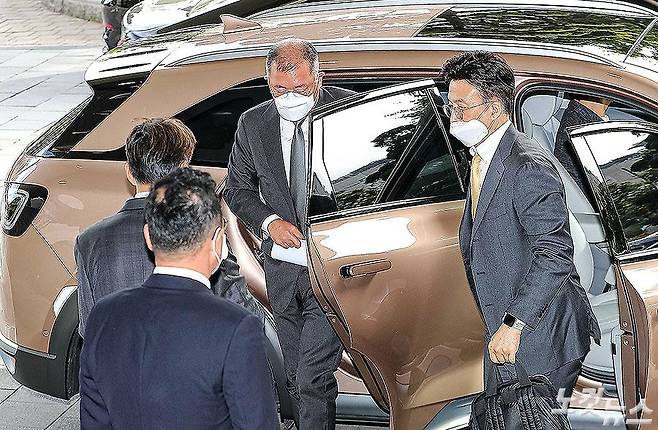 지난 14일 임시 이사회에서 회장으로 선임된 정의선 현대자동차그룹 회장이 15일 서울 종로구 정부서울청사에서 열린 '제2차 수소경제위원회'에 참석하기 위해 수소전기차 넥쏘를 타고 이동하고 있다. (박종민 기자)