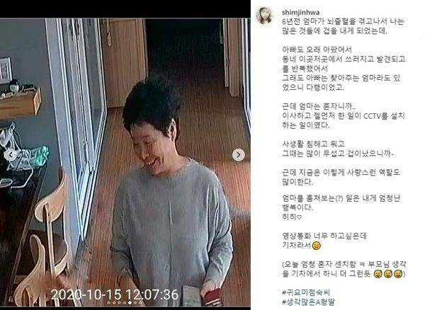 어제(15일) 심진화는 자신의 인스타그램에 "6년 전 엄마가 뇌출혈을 겪고 나서 많은 것들에 겁을 내게 되었다. 사생활 침해고 뭐고 엄마는 혼자니까 이사하고 제일 먼저 한 일이 CCTV 설치였다"며 사진 여러 장을 올렸습니다.
