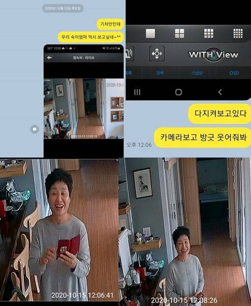 심진화는 "지금은 이렇게 사랑스러운 역할도 많이 한다"면서 "엄마를 훔쳐보는 일은 내게 엄청난 행복"이라고 전했는데요, 심진화가 어머니에게 "기차 안인데 엄마 보고 싶네. 카메라 보고 방긋 웃어줘 봐"라는 메시지를 보내자 어머니는 CCTV를 향해 활짝 웃어 보였습니다.