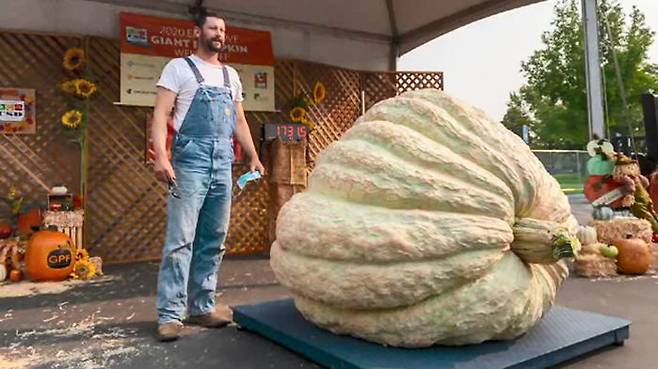 이 중에서도 가장 무겁고 대회 역사상 두 번째로 무거운 호박으로 트래비스 진저 씨의 바로 이 호박이 우승을 차지했습니다.