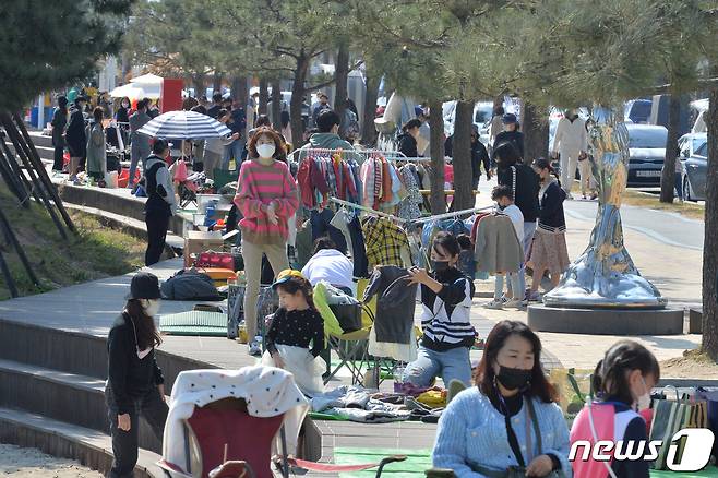 (포항=뉴스1) 최창호 기자 = 경북 포항시의 올해 마지막 벼룩시장이 17일 북구 영일대해수욕장에서 개장했다. 올해 벼룩시장은 신종 코로나 바이러스 감염증(코로나19) 사태로 인해 7월부터 중단돼 왔다. 2020.10.17/뉴스1