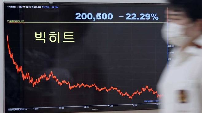빅히트 주가는 상장 첫날인 지난 15일 4.44% 하락에 이어 16일에도 22.29% 떨어져 이틀간 총 25.74% 급락했습니다.