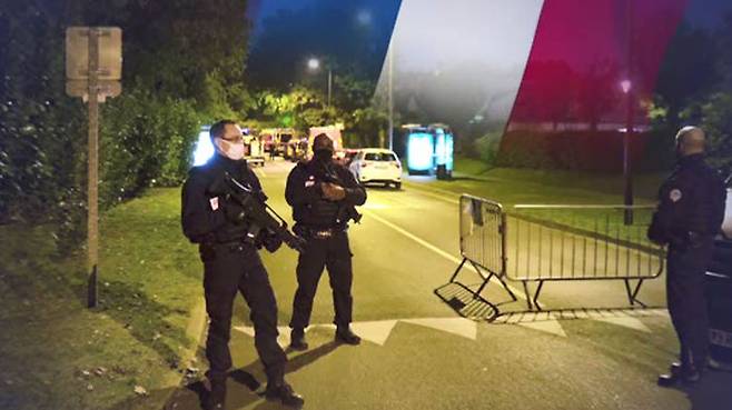 교사 참수 사건은 현지시간 16일 오후 5시쯤 파리에서 북서쪽으로 약 30㎞ 떨어진 이블린주 콩플랑 생토노린 학교 인근에서 발생했습니다.