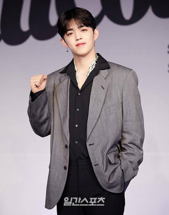세븐틴(에스쿱스, 정한, 조슈아, 준, 호시, 원우, 우지, 디에잇, 민규, 도겸, 승관, 버논, 디노) 멤버 에스쿱스가 포토타임에서 포즈를 취하고 있다. <사진=플레디스 제공>