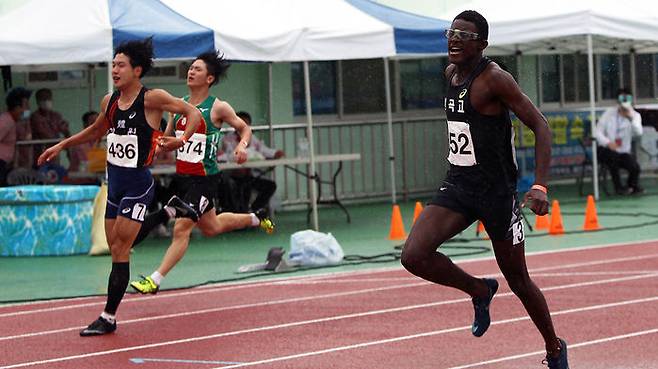한국 육상 기대주 비웨사 다니엘 가사마 선수가 오늘(19일) 예천공설운동장에서 열린 문화체육관광부장관기 육상대회 고등부 100m 결승에서 10초 79로 우승했습니다.