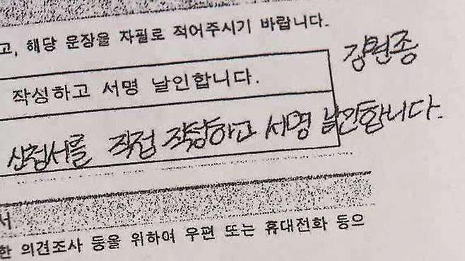 강순희 공단 이사장은 대필로 작성된 것이 맞다고 밝혔습니다.