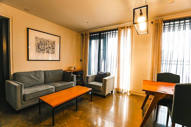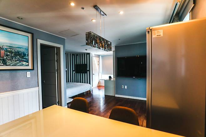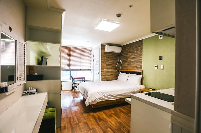 각 객실은 취사시설, 세탁기, 각종 가전류 등 생활에 필요한 물품들을 모두 갖추고 있다. 객실은 총 134개, 전부 원룸형으로 구성되어 있다. 가장 기본적인 객실인 스탠다드룸으로 들어서니 드럼 세탁기 옆으로 인덕션이 보인다. 어느 친구 집에 놀러 온 듯 편안하고 익숙한 기분이 든다. 로얄 스위트룸은 4인 이상 가족 여행객에게 추천한다.