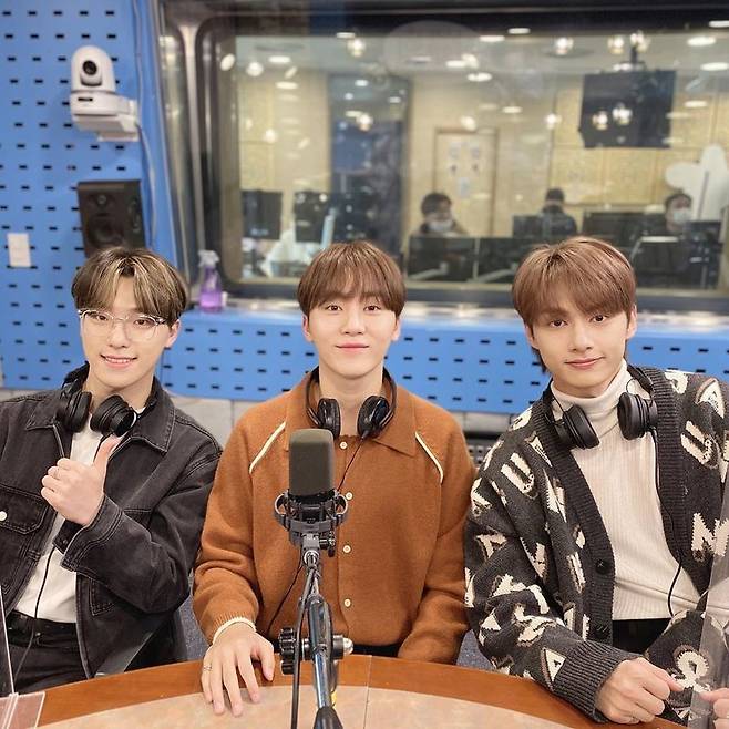 사진 속에는 '최화정의 파워타임' 스튜디오 안에 나란히 앉은 디노, 승관, 준의 모습이 담겼다.