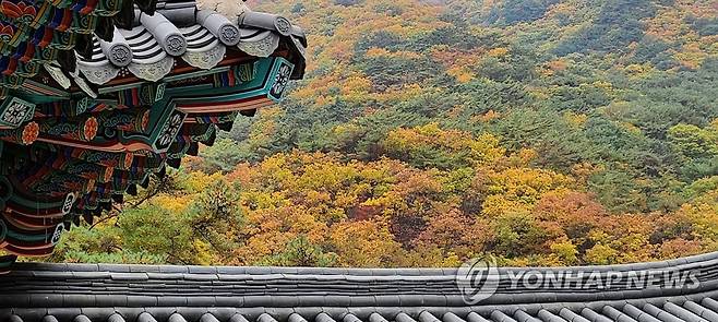 (춘천=연합뉴스) 이상학 기자 = 21일 강원 춘천시 청평사 주변으로 가을 단풍이 장관을 이루고 있다. 2020.10.21