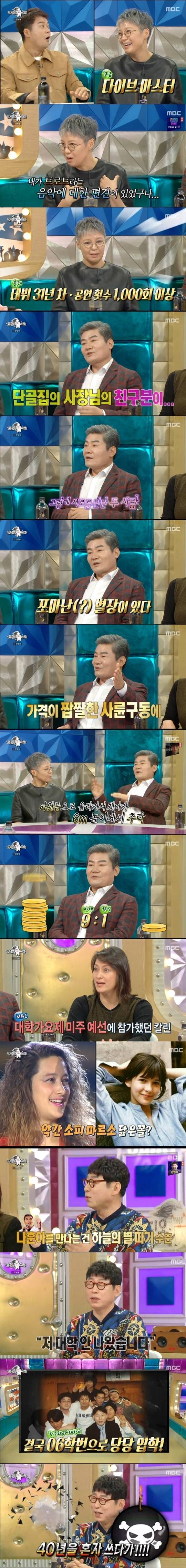 박칼린의 반전 과거가 공개됐다. 박칼린은 20대 초반인 1989년 MBC 대학가요제에 출전해 풋풋한 미모를 뽐낸 것. 이에 김구라는 “소피 마르소를 닮았다”며 칭찬했고 “티파니 느낌도 있다. 소녀시대 티파니가 아니라 예전에 티파니가 있었다”고 밝혔다. 박칼린은 “대학가요제 미주 예선에 참가했다가 합격해 한국에 오게 됐다. 당시 대상은 전유나의 ‘너를 사랑하고도’였다”고 비화를 밝혔다.