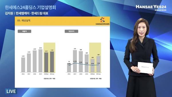 한세예스24홀딩스는 이날 유튜브 라이브 방송을 통해 기업설명회를 개최했다. 김석환 부회장을 비롯해 한세실업, 한세엠케이, 예스24, 동아출판 등 각 계열사 대표들이 직접 올해 사업 현황과 비전 등을 설명했다.