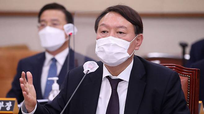 윤 총장은 국회 법사위 대검 국정감사에서 국민의힘 장제원 의원 질의 당시 "임명권자 대통령께서 임기 동안 소임을 다하라고 하셨다"고 설명했습니다.