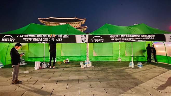 서울 광화문광장에 오늘(23일) 박정희 전 대통령 분향소 명목의 천막 2개 동이 설치됐습니다.