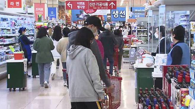 오랜만에 장을 보러 나온 손님들로 대형마트가 북적입니다.